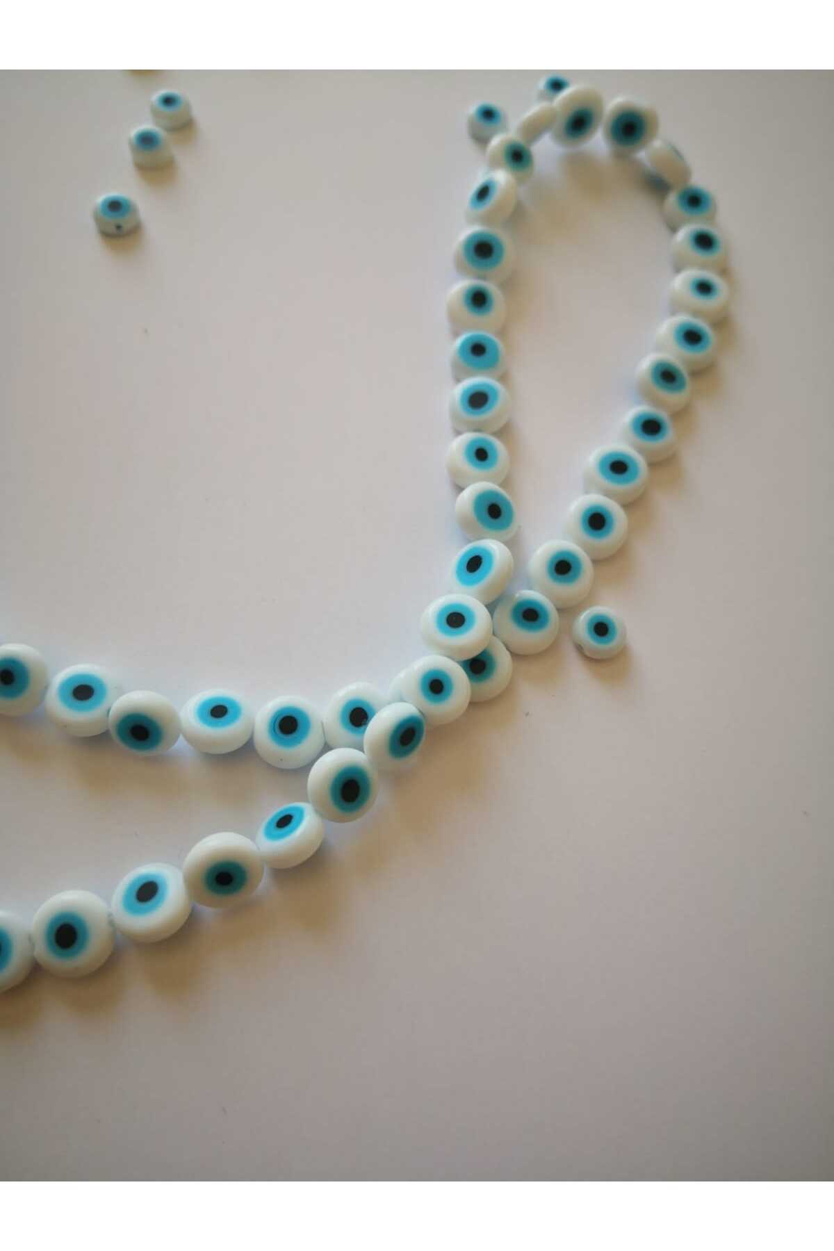 Beyaz Akrilik Nazar Boncuğu 8 mm (10 adet )