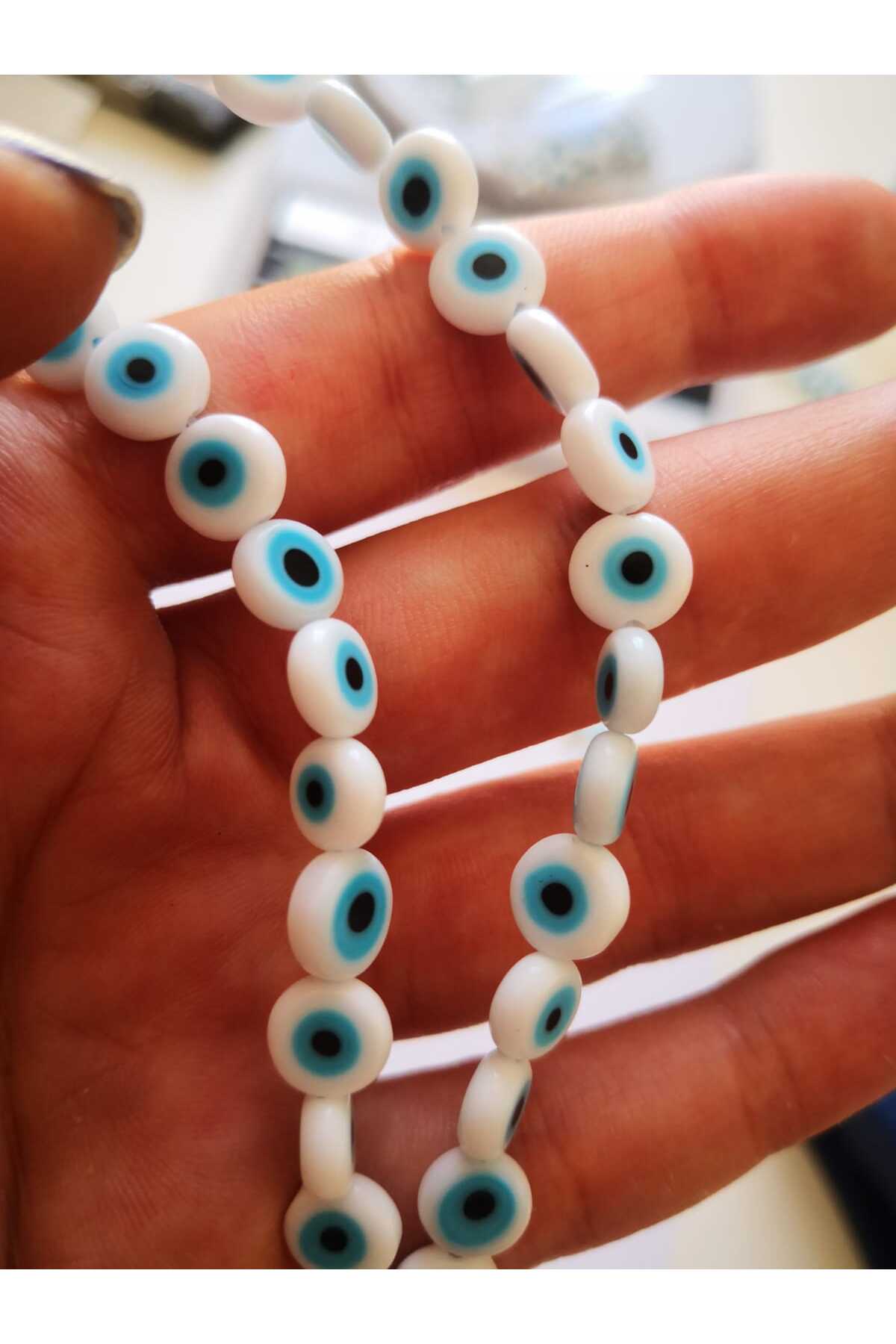 Beyaz Akrilik Nazar Boncuğu 8 mm (20 adet )
