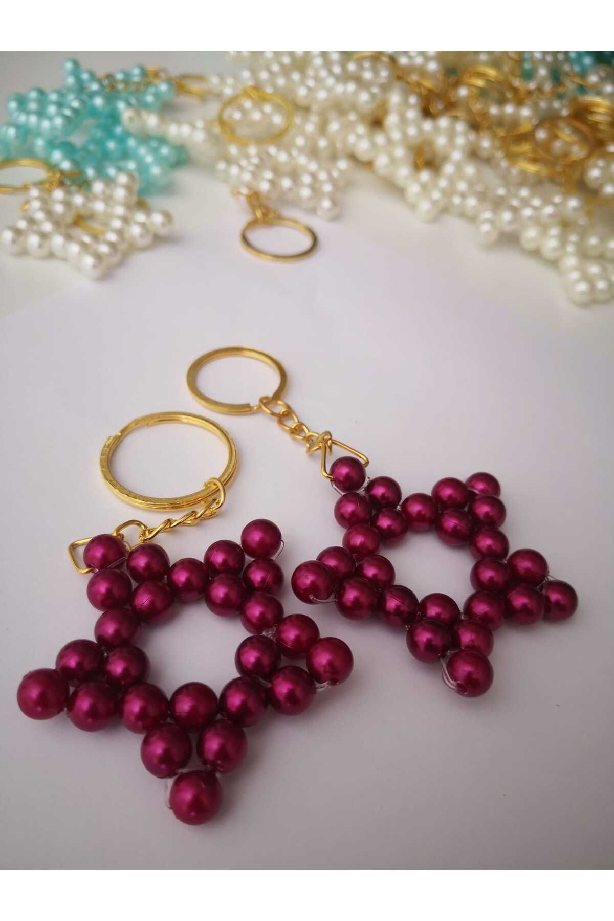 Bordo Renk Yıldız Anahtarlık (15 Adet )