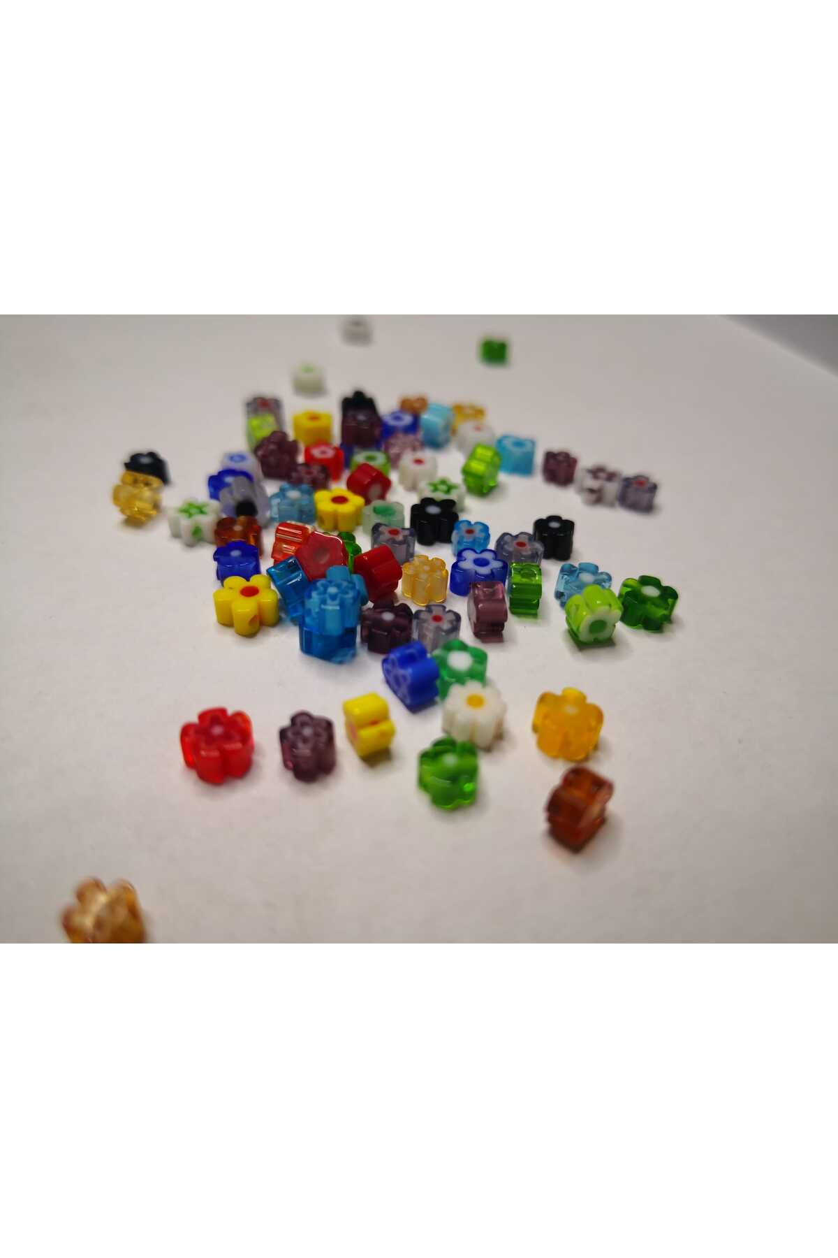 Çiçek Desenli Renkli Boncuk 5 mm 50 Adet
