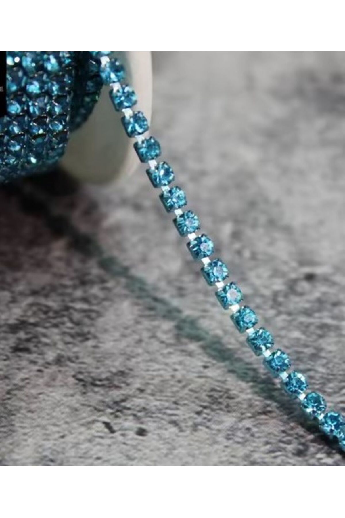 Mavi Beyoğlu Swarosvki Taşlı Şerit Zincir (1 Metre)